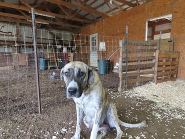 Zeus is a blue fawn with black mask and black ears. Both of his parents are AKC registered, but I bought him for his excellent line of livestock guard dog abilities as well. I did not purchase his AKC registration paperwork, or breeding rights.